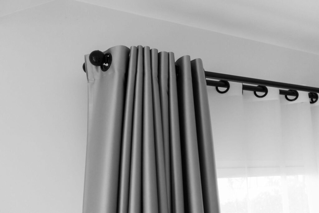 - The Curtain Rule: Always and I mean always hang your curtain rods “High and Wide.” The rod should be as close to the ceiling as you can get it, not just sitting on top of the window frame. This “lifts” the ceiling and makes your room feel airy.